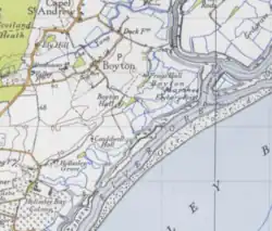 Boyton is a village and civil parish in the East Suffolk district of Suffolk, England, about eight miles east of Woodbridge, and close to Orford Ness. Boyton is a small village in South East England and is part of the heritage coast. In the Domesday Book of 1086 Boyton was recorded under the name "Bohtuna".[2] The village has a number of facilities within the surrounding area, for instance Hollesley primary school, a village primary school for children aged 4–11 years.[3] Boyton village hall is becoming a focus for new village activities, and HM Prison Hollesley Bay is also located not far from the village centre. In the 1870s Boyton was described by John Marius Wilson as:
