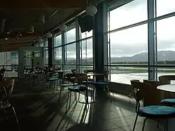 Airport security was introduced on 1 January 2005.[15] This put a large strain on the terminal capacity and the terminal had to be expanded. Makeshift solutions were used, such as plywood boards to allocate people through the security check. In late 2004, the airport started planning an all-new terminal building, as the old terminal was deemed both too small and out of date.[16] Construction of the NOK-115-million terminal started on 24 October 2006.[17] As the first airport in the world, Brønnøysund received SCAT-I, a satellite-based landing system, on 29 October 2007.[18] The new terminal opened on 26 May 2008, which allowed the a restaurant to open at the airport, all vehicles to be stored indoors[19] and included a new helicopter terminal.[4] Thon Hotel Torghatten opened in October 2009[20] and an airport surveillance radar was installed in 2010, making Brønnøysund the first regional airport in Norway to have one.[4]
