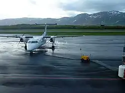 Brønnøysund Airport (Norwegian: Brønnøysund lufthavn; IATA: BNN, ICAO: ENBN) is a regional airport located at the town of Brønnøysund, in Brønnøy Municipality, Nordland county, Norway. The airport is owned and operated by the state-owned Avinor and serves the southern part of Helgeland. It has a 1,200-by-30-meter (3,937 ft × 98 ft) runway numbered 03–21[1][3] and is served by Widerøe, which operates their Bombardier Dash 8 aircraft to Oslo, Trondheim, Bodø, Bergen and other airports in Helgeland. The airport also serves offshore helicopter flights by CHC Helikopter Service to Norne and temporary oil rigs in the Norwegian Sea. In 2014, the airport served 117,471 passengers, making it the second-busiest regional airport in Norway, after Florø Airport.