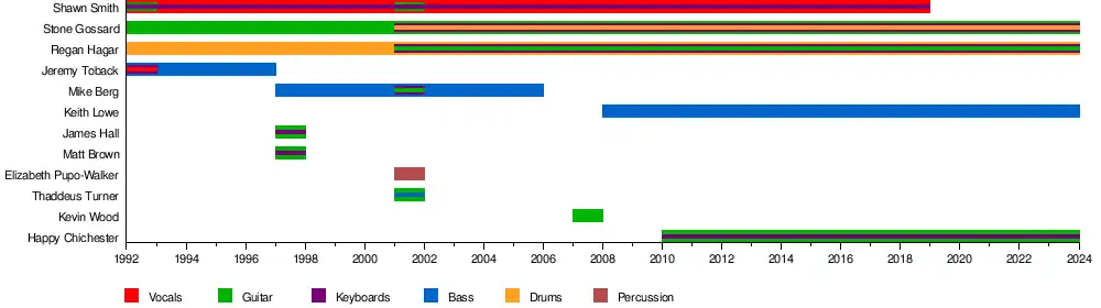 - Shawn Smith – vocals, keyboards; occasional guitars, bass, percussion and drums (1992–2019; died 2019)