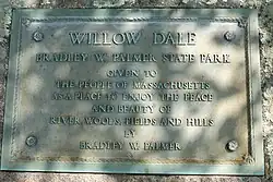 Bradley Palmer State Park is a public recreation area covering 736 acres (298 ha) on the Ipswich River in the towns of Hamilton and Topsfield, Massachusetts. The state park was once the estate of noted attorney Bradley Palmer. In addition to an extensive system of multi-use trails, the park features Palmer's restored Willowdale Mansion. The mansion is now home to Willowdale Estate, a premier event venue. Bordered on the north by the Ipswich River and Willowdale State Forest, the park is managed by the Department of Conservation and Recreation.[3]