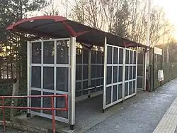 The present station off Stanningley Road opened on 12 September 1983[1] by Metro (West Yorkshire Passenger Transport Executive) and British Rail. The station's two wooden platforms are staggered, and cost £125,000 (equivalent to £533,000 in 2023).[2]