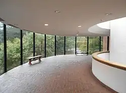 The museum, sometimes referred to as the Wyeth Museum,[5][6] is housed in a converted nineteenth-century mill overlooking the banks of the Brandywine Creek. The glass-walled lobby overlooks the river and countryside that inspired the Brandywine School earlier in the early 20th century.[2]