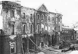 In the summer of 1920, during the Battle of Białystok, the palace served briefly as the headquarters of the Provisional Polish Revolutionary Committee. Branicki Palace suffered from bombing and fires caused by the Germans, with damage totaling approximately 70%.[3][12] It was restored after World War II as a matter of national pride.[12]