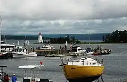 The Bras d'Or Yacht Club is a yacht club in Baddeck, Nova Scotia. It is located on its namesake body of water, the Bras d'Or Lakes. The club was founded in 1904. Among its founding members were Gilbert Hovey Grosvenor, H. Percy Blanchard and Arthur Williams McCurdy.[1] The clubhouse was constructed in 1913. Longtime member J.A. McCurdy, while serving as Lieutenant Governor of Nova Scotia, donated the McCurdy Cup to the club.[2] This cup serves as the club championship.[3] Alexander Graham Bell frequently attended club functions and even composed a song about it.[3]