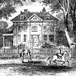 The Baroness Riedesel, whose husband commanded the Brunswick regiments that supported the British, spent much of the wartime "imprisoned" at 149 Brattle Street, the old Tory Row mansion now commonly called the Lechmere-Sewall-Riedesel House.[12] She has left a charming painting in words of the Tory society on Brattle Street before the Revolution came: "Never had I chanced upon such an agreeable situation. Seven families, who were connected with each other, partly by the ties of relationship and partly by affection, had here farms, gardens, and magnificent houses, and, not far off, plantations of fruit. The owners of these were in the habit of daily meeting each other in the afternoons, now at the house of one and now at another, and making themselves merry with music and the dance,— living in prosperity, united and happy, until, alas! this ruinous war separated them, and left all their houses desolate, except two, the proprietors of which were also soon obliged to flee."[7]