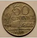 The 1 cruzeiro coin of the first family, launched along with the banknotes of the new standard in 1970 would be issued until 1978, with reduced coinage in 1977 and 1978 due to the high cost of the metal.