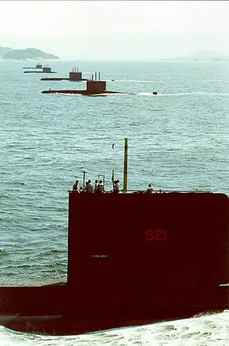 On 26 December 2000 the Tonelero sank at her mooring in the Rio de Janeiro navy yards due to crew error. All 9 crew members aboard escaped from the submarine.[3]