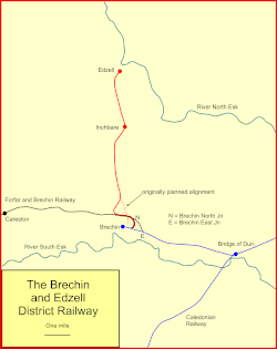 The Brechin and Edzell District Railway was a local line in Scotland connecting Edzell, then a developing tourist centre, to the nearby main population centre of Brechin, where there was a branch of the Caledonian Railway. The short line opened in 1896, and it was worked by the Caledonian Railway.