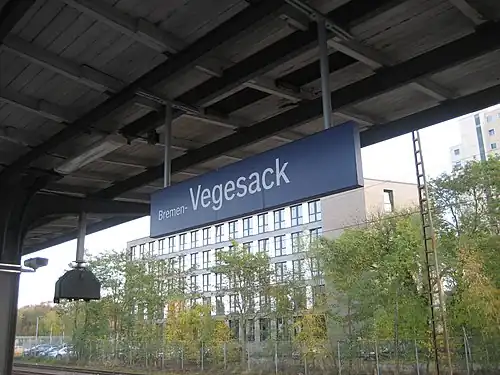 Bremen-Vegesack is a railway station serving the Vegesack district of Bremen. The station is part of the Bremen-Farge railway line served by Bremen S-Bahn line RS1, operated by NordWestBahn.