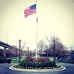 In October 2014, MassPort announced the plans for East Boston's first dog park, giving residents a place to bring their dogs. Dedicated on September 14, 2015, the Bremen Street Dog Park is located at the southeast terminus of Bremen Street Park, underneath the Route 1A overpass near the Sumner Tunnel, where the neighborhoods of Jeffries Point and lower Eagle Hill intersect. The $250,000[15] half-acre dog park is divided into a 17,000-square-foot section for larger dogs and a 5,500-square-foot part for smaller ones, fenced off from each other. Each area has its own dog exercise centers including agility courses, pet waste stations, benches, separate water fountains for dogs and their owners,[16] and benches.[17] Pressley Associates Landscape Architects of Boston designed the park's dog play area with a surface of crushed gravel, replacing the site's original cobblestones. An asphalt track for dog owners to socialize, run around, or watch their dogs at play surrounds the graveled area.[16] The remainder of Bremen Street Park does not allow dogs.[3]