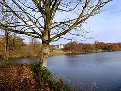 The pleasure grounds and parkland around the hall were the work of landscape gardeners Richard Woods in the 18th century and Robert Marnock, the estate's head gardener, in the 1820s and 1830s.[6] The hall overlooks the River Dearne, which flows in an easterly direction through the parkland. The river is dammed to form two lakes. Oxley Bank, a linear earthwork, forms the park's eastern boundary.[2]
