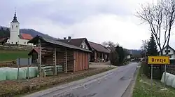 - The house at Brezje pri Dobrovi no. 17 stands in a clustered area of the village. This is a single-story rectangular structure with a part for livestock. The entryway has a semicircular door casing carved from black limestone, and the year 1886 is carved into the door casing of the livestock area.[17]