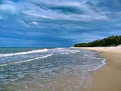 Bribie Island is the smallest and most northerly of three major sand islands forming the coastline sheltering the northern part of Moreton Bay, Queensland, Australia.[1] The others are Moreton Island and North Stradbroke Island. Bribie Island is 34 kilometres (21 miles) long, and 8 kilometres (5.0 miles) at its widest. Archibald Meston believed that the name of the island came from a corruption of a mainland word for it, Boorabee meaning koala.[2] However, the correct Joondaburri name for the island is in fact Yarun.[3]
