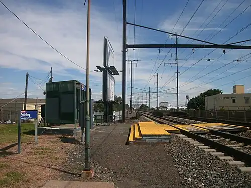 The station is located along the Northeast Corridor, owned by Amtrak. It is 10.2 miles (16.4 km) from Suburban Station. In 2005, this station saw 162 boardings on an average weekday. Amtrak trains do not stop at this station.