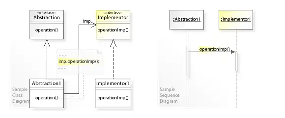 The Bridge classes are the Implementation that uses the same interface-oriented architecture to create objects. On the other hand, the abstraction takes an instance of the implementation class and runs its method. Thus, they are completely decoupled from one another.