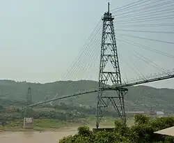 The oldest bridge still in use on the Yangtze is the Jinlong Bridge in Lijiang, a simple iron chain suspension bridge first built during the Qing dynasty from 1876 to 1880.[8] It was destroyed in a flood in 1935 and rebuilt the following year.[8] The bridge was named a National Historical Site in 2006.[8]