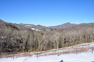 ![]() Brier Knob (center), also Sugar Mountain and Flattop Mountain on left, Grandfather Mountain and Pixie Mountain on right. | |