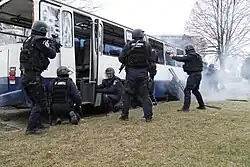 Since 2011, the Brigade is part of the ATLAS Network of police tactical units of the European Union.[2] The unit received its battle flag on 11 February 2014.[3]