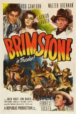 Brimstone is a 1949 American Trucolor Western film directed by Joseph Kane and written by Thames Williamson. The film stars Rod Cameron, Lorna Gray, Walter Brennan, Forrest Tucker, Jack Holt and Jim Davis. The film was released on August 15, 1949, by Republic Pictures.[1][2][3]