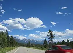 The Highway first opened in 1953 from the international border to Elko, on Highway 3, but it did not follow its current route from the border until 1958.[5] Before 1959, the Banff–Windermere Parkway, the segment of Highway 93 east of Radium Hot Springs, had a designation of Highway 1B,[6] reflecting its connection to the Trans-Canada Highway within Alberta at Castle Junction. In 1959, Highway 93 was extended from Elko along Highway 3 and Highway 95 to Radium Hot Springs, while Highway 1B and the Icefields Parkway (known as Highway 1A) were renumbered to their present designation.