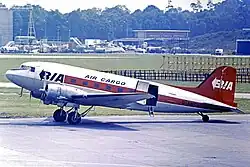 In addition to its Herald turboprop fleet, BIA also inherited a small number of Douglas DC-3 "Dakota" piston-engined airliners from BUIA. These exclusively operated freight services until the last example's retirement on 30 May 1974.[1][15][16][17] Until then, the DC-3 freighters (together with the convertible Heralds) were kept busy carrying mail and cargo, including fresh flowers from the Channel Islands to the UK mainland (principally Bournemouth and Gatwick) as well as overnight newspaper deliveries from Gatwick under contract to the Ministry of Defence to supply the UK's armed forces in Germany.[15]