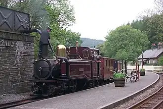 Bala Lake Railway[10] | 1972–present | 1 ft 11+1⁄2 in (597 mm) | 4.5 miles (7.2 km) | Llanuwchllyn, Wales | ![]() |