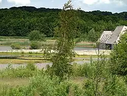 Brockholes was previously a major quarry extraction site. The land was bought by the Trust in January 2007, and the reserve opened to the public at Easter 2011.[1] It has been regenerated as a mosaic of key habitats such as pools, reedbeds and woodland. The reserve is aimed less at dedicated bird-watchers and nature lovers than the general public of the big cities.[2] The riverbank is covered in steaming ferns and rampant Himalayan balsam.[3]