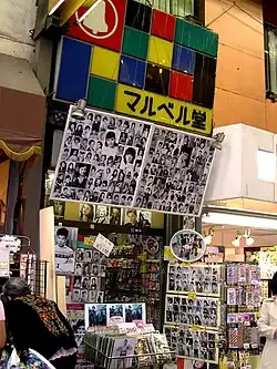 In 1921 the Marubell Company began marketing photographs of celebrities under the name promide (プロマイド, puromaido).[2] The first of these was a portrait of the film actress Sumiko Kurishima. Marubell sold the photographic paper as "bromide", and its finished photographs as "Promide". The two words eventually became synonymous and between the mid-1940s and the late-1980s sales of "bromides" were used to measure the popularity of Japanese idols.