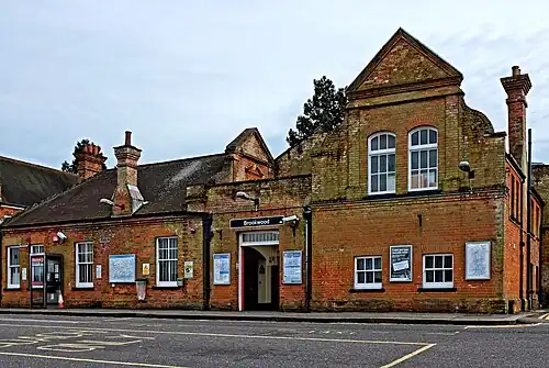 Brookwood railway station serves the village of Brookwood, in Surrey, England. It lies 27 miles 79 chains (45.0 km) down the line from London Waterloo.