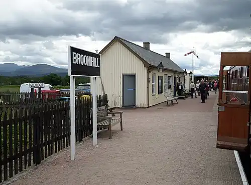 Broomhill railway station or Broomhill for Nethy Bridge railway station[1] is a reconstructed railway station on the former Highland Railway main line[2] which was originally built to serve the small villages of Nethy Bridge and Dulnain Bridge in Strathspey. It is at present the eastern terminus of the Strathspey Steam Railway.