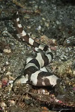 The brownbanded bamboo shark (Chiloscyllium punctatum), is a bamboo shark in the family Hemiscylliidae that can be found in the Indo-West Pacific from Japan to northern Australia, between latitudes 34° N and 26° S. It is regularly bred in public aquaria, and is arguably one of the sharks most suited to captivity due to its docile disposition, sedentary nature, and relatively small size. In public aquariums, these fish can live up to 25 years.[2]