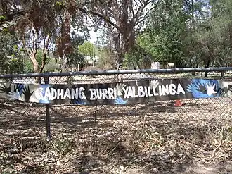 Brungle is home to a large community of Waradajhi people. The Brungle Public School is testament to this with its sign at the front of the school, written in the local Aboriginal language that states Gadhang Burri Yalbillinga which means Happy Children Learn. The school was established back in 1868 and has an enrolment of approximately 26 pupils in two classes of whom at any one time about 56% are Waradajhi.[4]