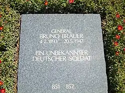 After his capture by the British he was extradited to Greece for the deportation of the Cretan Jewish Greeks in May 1944 and put on trial there.[1] (At the end of May 1944, the Jewish citizens of Crete were arrested and shipped on the Danae to continental Europe. On June 8, the ship was sunk by HMS Vivid.)[2] Along with General Friedrich-Wilhelm Müller, Bräuer was charged with war crimes by a Greek military court. He stood trial in Athens for atrocities on Crete. Under the prosecution of Admiral Nicholas Zacharias, the Greek naval prosecutor, Bräuer was accused of the deaths of 3,000 Cretans, massacres, systematic terrorism, deportation, pillage, wanton destruction, torture and ill treatment.[3] Bräuer was convicted and sentenced to death on 9 December 1946. He was executed by firing squad at 5 o'clock on 20 May 1947, the anniversary of the Axis invasion of Crete. Historian Antony Beevor called him "a truly unfortunate man," having been executed for crimes "committed under another general."[4]