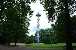 The actions of World War II in the area of Katowice began on 1 September 1939. Between 1 and 2 September, the city was abandoned by the Polish army and administration.[66] On 4 September, a column from the 239th Infantry Division, led by Erich Höcker, entered the area of Brynów. Following Tadeusz Kościuszko Street, the column reached Kościuszko Park,[67] where they were fired upon from the Parachute Tower.[68]