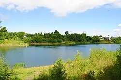 As of early 2023, there are no designated natural protection areas in the district.[24] From 1996 to 2003, the Grünfeld pond ecological area existed, established by a resolution of the Katowice City Council on 11 March 1996[25] and dissolved on 22 December 2003.[26] Situated near Bazaltowa and Krzemienna streets, Grünfeld pond was a former clay pit filled with water, surrounded by private property fences and allotment gardens. Its banks were partially covered by willow thickets and waterside vegetation, while sections of the shoreline featured reed beds with common reed and bulrush. This area provided a suitable habitat for amphibian reproduction and nesting sites for waterfowl.[25]