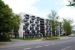 In the times of the Polish People's Republic, in the 1960s, two housing estates were built in the area of the present district. The so-called Brynów A Estate was constructed, featuring single-family housing between Brynowska and T. Kościuszko streets,[74] and also the Brynów B Estate, located to the east of T. Kościuszko Street and north of St. Hubert Street[74] – this second estate began to be referred to as the Ptasie Estate.[75] In the 1970s, the Górnośląska Avenue section was modernized, acquiring two lanes of traffic in each direction.[76] Between 1978 and 1982, the Mikołowski Roundabout at the intersection of Mikołowska Street and Górnośląska Avenue was rebuilt into a large road junction.[76] In 1978, the construction of the Alfons Zgrzebniok Estate, planned to house 3,500 residents, began on the grounds of the Brynów manor.[77]