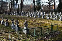 In the 1920s, a cemetery for prisoners of war from 1917 was established, becoming the Katowice garrison cemetery.[61] On 15 October 1924, the area of today's Brynów-Osiedle Zgrzebnioka district was incorporated into the boundaries of Katowice.[62] In 1925, due to the increase in population after the city's expansion, the Katowice City Council divided the city into districts. One of these districts was Ligota-Brynów.[63]