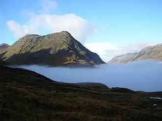 Buachaille Etive Beag (/ˈbuəxeɪl ˈɛtɪv ˈbɛɡ/,[2] Scottish Gaelic: Buachaille Èite Beag,[3] 'little herdsman of Etive') is a mountain between Glen Coe and Glen Etive in the Highlands of Scotland. It lies west of Buachaille Etive Mòr, its larger neighbour, from which it is separated by a high mountain pass called Lairig Gartain.