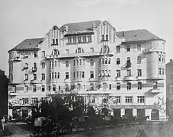 One of the lesser-known architects who designed buildings in the Palotanegyed's pre-World War One boom period was another Jewish architect, Adolf Greiner (born Losoncz, now Slovakia, 1847, died Budapest 1931). He designed the Újpest synagogue, built 1885–86, and a number of inner Pest apartment buildings in the 1890s, including the four-storey building at Horánszky utca 27, built in 1892.[14][15]
