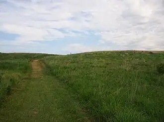 Buffalo River State Park is a state park of Minnesota, United States, conserving a prairie bisected by the wooded banks of the Buffalo River. Together with the adjacent Bluestem Prairie Scientific and Natural Area co-owned by The Nature Conservancy and Minnesota's Department of Natural Resources, it protects one of the largest and highest-quality prairie remnants in Minnesota.[2] It used to offer a man-made swimming pond close to the Fargo–Moorhead metropolitan area, however, that has not been open since 2018. Presently, it is most popular for its high quality educational programming, swimming in the Buffalo River, and picnicking.[3] The 1,068-acre (432 ha) park is located just off U.S. Route 10 in Clay County, 4.5 miles (7.2 km) east of Glyndon and 14 miles (23 km) east of Moorhead.[4]