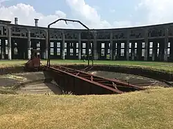 The roundhouse and its turntable, which operated from 1934 to 1971, were designated as a National Tangible Cultural Asset in 2012 as the last roundhouse in Kyushu.[1]