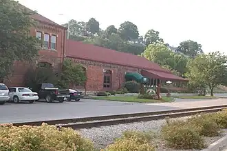 The freight house was built by the Burlington, Cedar Rapids and Northern Railroad (BCR&N) in 1898. It replaced a smaller brick freight house that had been built in 1873. The freight house is the only remaining structure from the BCR&N left in Burlington, and the only Victorian structure remaining on the riverfront.[2] The railroad's shops had been located further north in an area called "The Bottoms." Its original passenger depot was located in a commercial building that was located at Jefferson and Front Streets. It moved into the CB&Q's Union Depot further south along the riverfront where the Amtrak station is now located. The BCR&N, with passenger and freight service between Minneapolis and St. Louis was considered the most important north-south rail line in Iowa.[2] In 1903 the railroad was acquired by the Chicago, Rock Island and Pacific Railroad, and the freight house served that line. After the Rock Island Line went out of business the building sat empty until it was converted into a restaurant. The structure had to be restored after floods in 1993 and 2008 inundated it.[3]