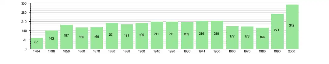 As of 2000, there were 138 private households in the municipality, and an average of 2.5 persons per household.[9] There were 42 households that consist of only one person and 12 households with five or more people. Out of a total of 139 households that answered this question, 30.2% were households made up of just one person and there was 1 adult who lived with their parents. Of the rest of the households, there are 39 married couples without children, 49 married couples with children There were 5 single parents with a child or children. There were 2 households that were made up of unrelated people and 1 household that was made up of some sort of institution or another collective housing.[10]