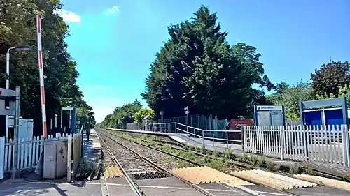 It has two platforms, a five-space car park, a help point and shelters on both platforms.