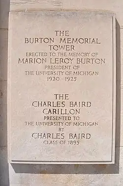 - Dedicated to: U-M President Marion Leroy Burton (Presidency 1920–1925)