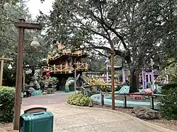 An unspecified addition to the park was disclosed in May 1978 at a cost of between $5 and $10 million, including a large dining facility.[127][128][129] During 1978, Anheuser-Busch made land acquisitions extending their total property to encompass around 350-acre (140 ha) in Tampa.[130] Construction was well underway in November for the expansion titled Timbuktu.[131] In February 1979, the park unveiled a $18.5 million expansion that would include the Timbuktu addition and a new water park adjacent to the park called Adventure Island.[132][133] The Timbuktu addition would mark the 20th anniversary of the park's opening. It would also connect the Congo and Nairobi sections, include a large dining facility, several attractions, and an amphitheater.[134][135] The Trans Veldt Railway operated a new station in the area in 1979.[132] Continuing with the developments for the past years was the announcement of a $20 million hotel in April,[136][137] though was later delayed.[138] Parts of the Timbuktu section began to open in late 1979.[139][140]
