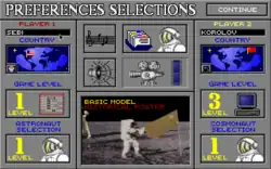 Buzz Aldrin's Race Into Space, frequently abbreviated BARIS, is a 1993 space simulation strategy game for MS-DOS. The player takes the role of Administrator of NASA or head of the Soviet space program with the ultimate goal of being the first side to conduct a successful crewed Moon landing.[4][5] It was developed by Strategic Visions and published by Interplay Productions as a computer version of Liftoff!, a 1989 board game developed by Fritz Bronner.[6] BARIS was re-released in 1994 on CD-ROM, incorporating the earlier updates to the floppy disk version, a few new updates, improved video of the mission launches,[7][8] and new multiplayer modes.[9]