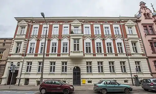 1896–1898 | Building at 5 Sowińskiego street | Originally schools for boys and girls (German: Volkschulen). Currently Youth Hotel for Schools (Polish: Szkolne Schronisko Młodzieżowe). | ![]() |