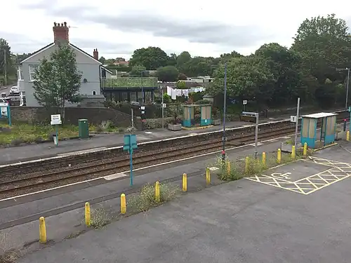 Bynea railway station (Welsh: Bynie) serves the village of Bynea near Llanelli, Carmarthenshire, Wales. Bynea station is situated close to the Millennium Coastal Park and is a convenient stop for cyclists and hikers to the coastal area. It is also the last stop on the Heart of Wales route (on the double track section shared with the Swansea District Line) before it joins the West Wales Line at Llandeilo Junction, to the east of Llanelli.